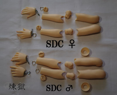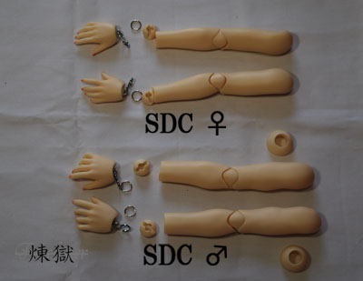 ♀は、肩〜二の腕のパーツ・関節・腕パーツ・ワッシャー・手関節・手パーツの6構成