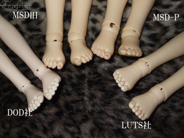作りもやはり設定年齢の低いMSDの造形は子どもっぽい足なのに対しモデル体型に近いDOD社とLUTS社は作りが繊細な感じに見えます